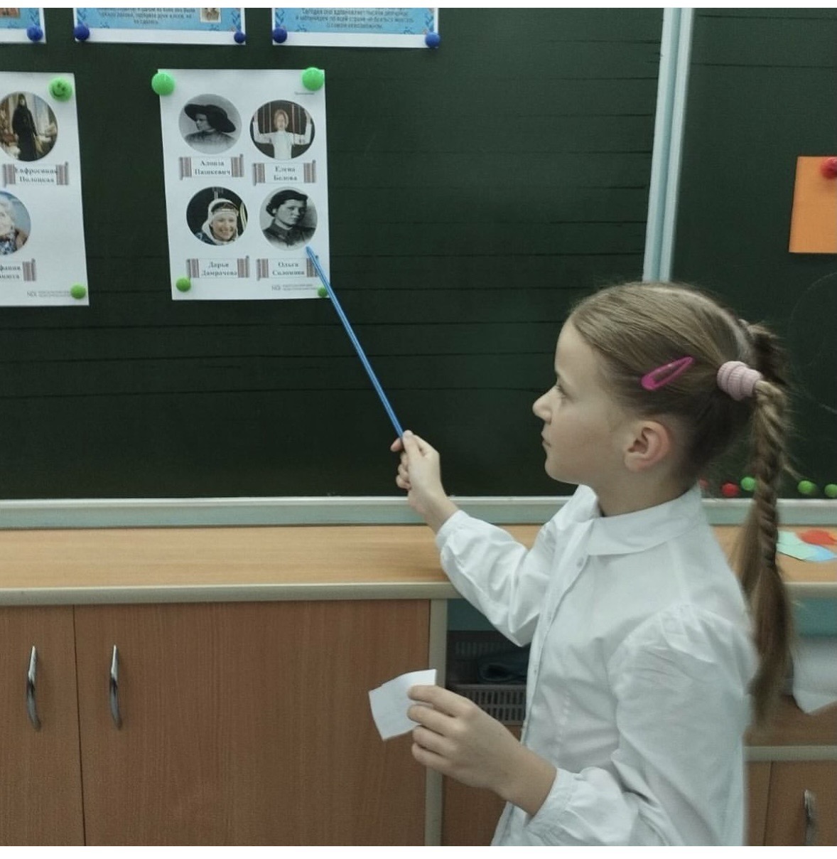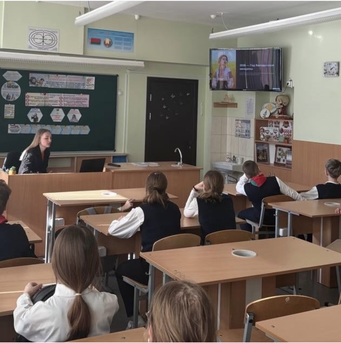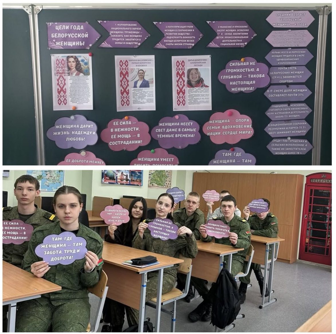 На уроке ребята узнали о знаменитых белорусcких женщинах: от Ефросиньи Полоцкой до наших современниц — учителей, врачей, матерей-героинь. Мы вспомнили, какой ценой женщины сохраняли мир в годы войны и как сегодня они строят будущее Беларуси.