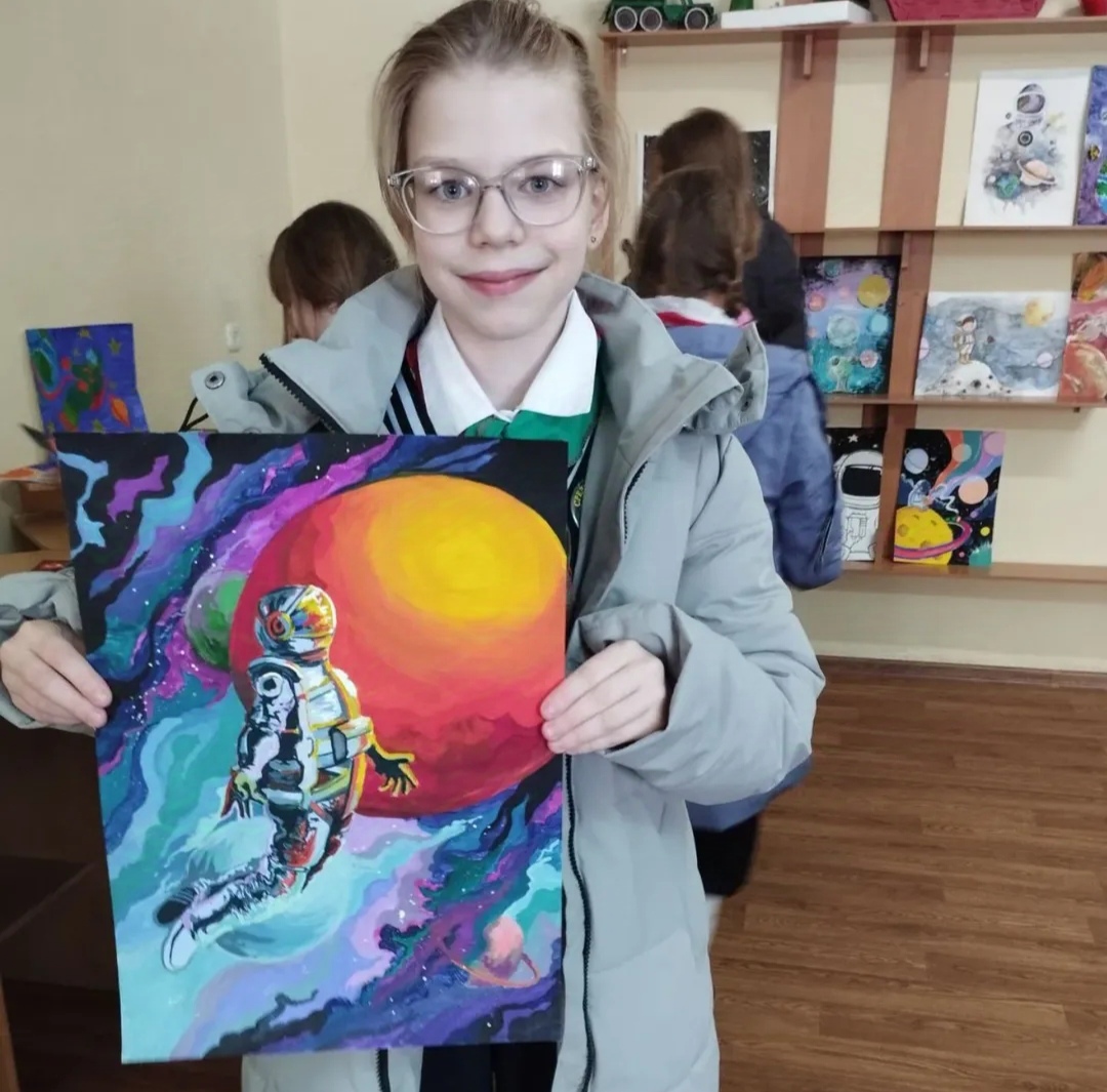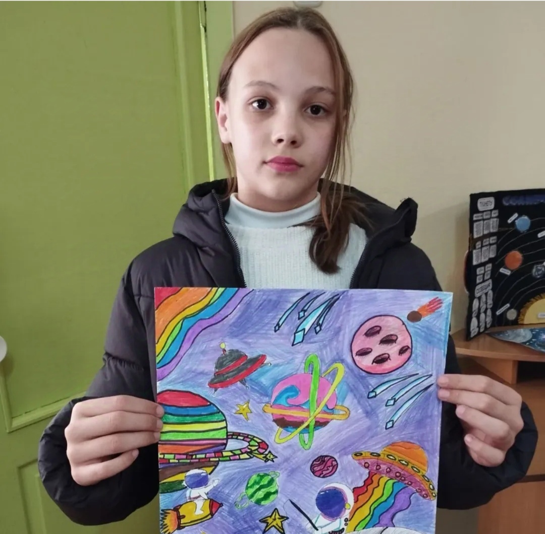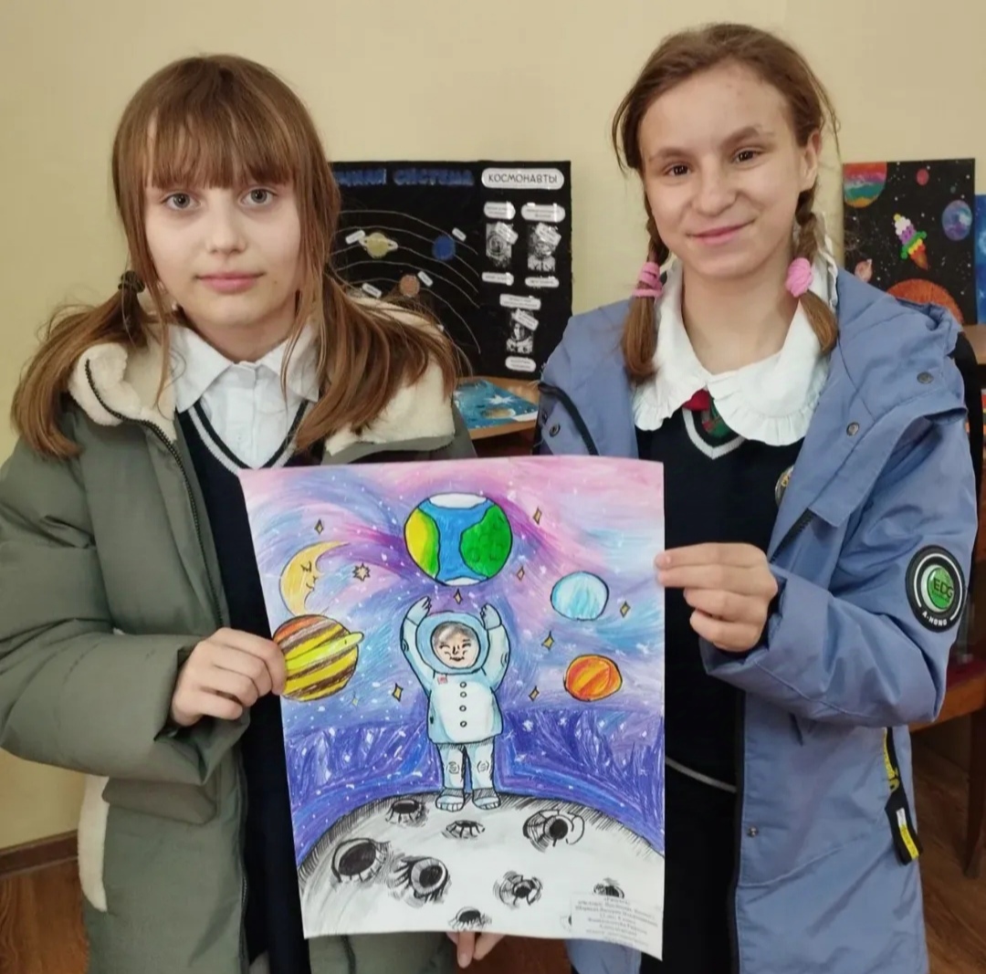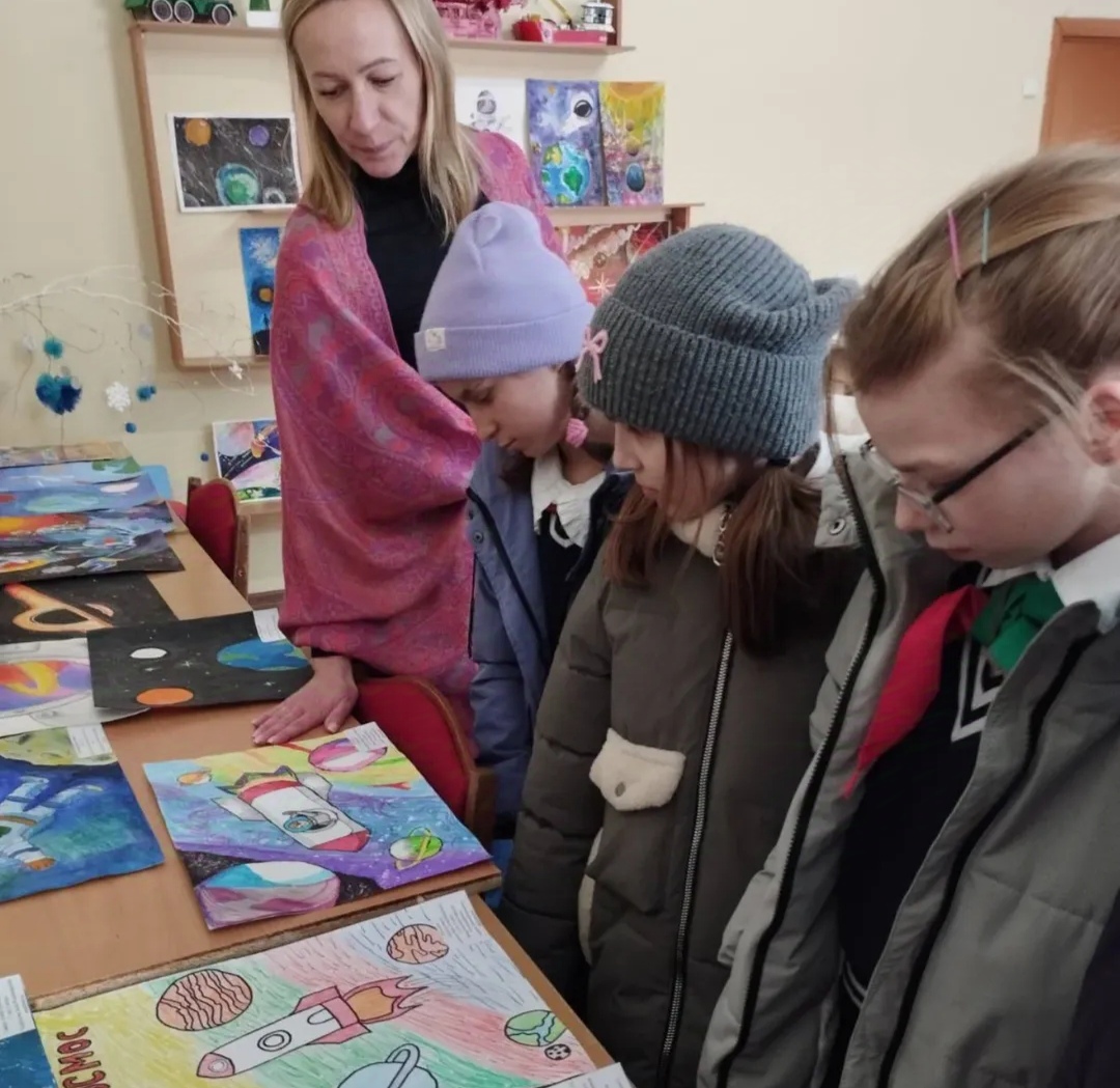 8 апреля учащиеся 5 класса посетили выставку рисунков и творческих работ "Очарование космоса".