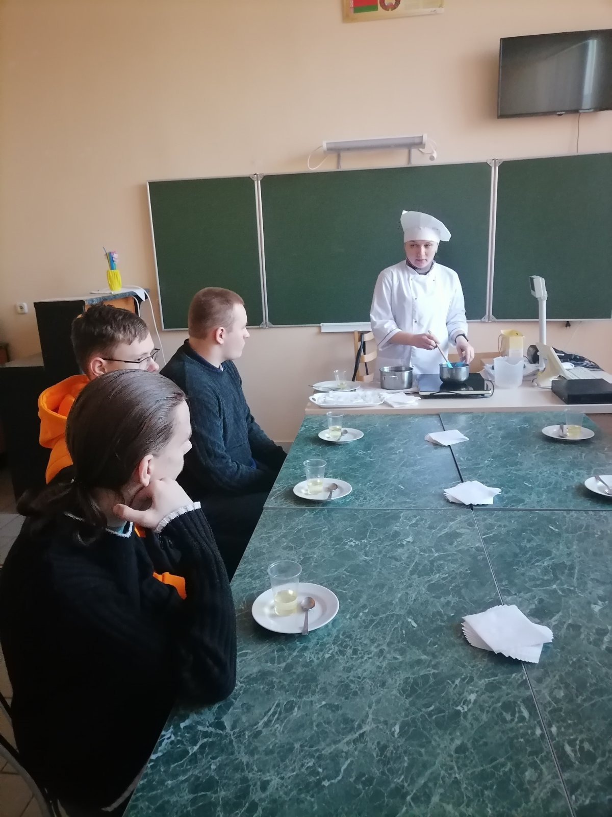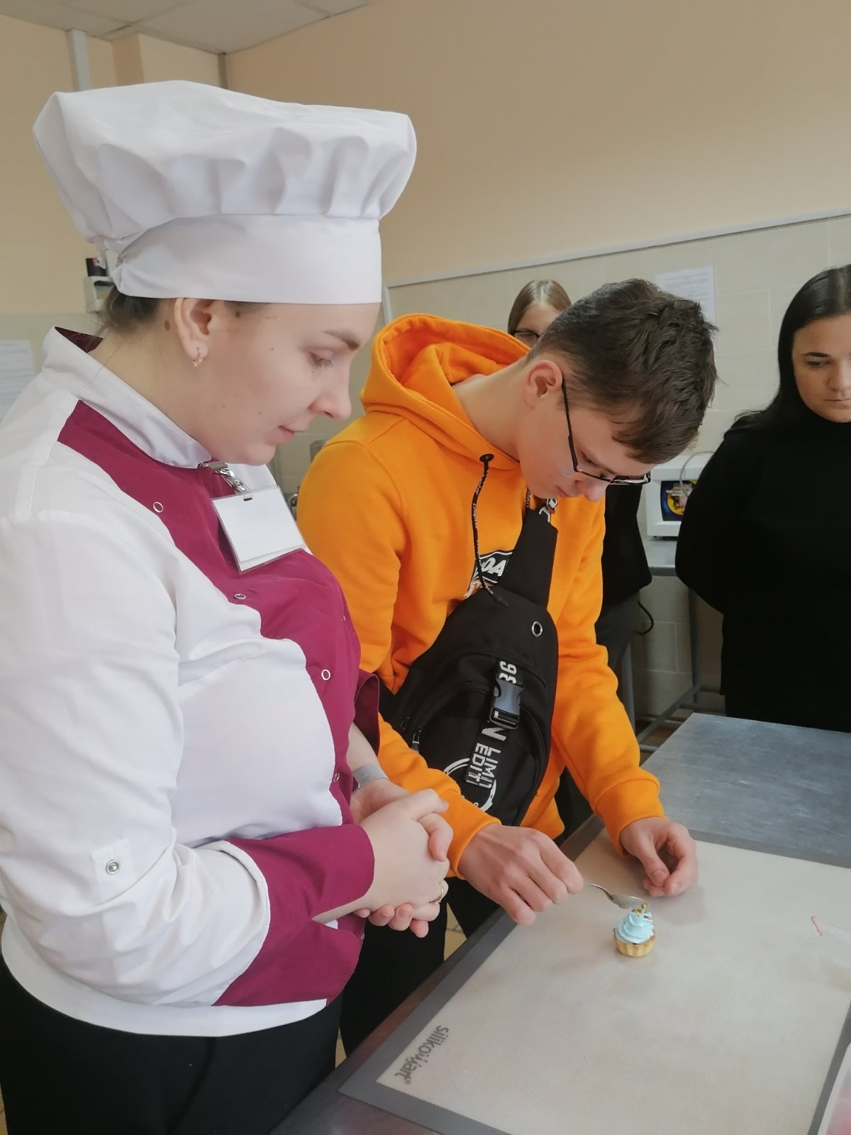 8 февраля в рамках профориентационной работы учащиеся 9 "А" класса посетили "Могилевский государственный технологический колледж". Ребята познакомились с режимом работы колледжа и его специальностями, посмотрели учебные кабинеты и попробовали себя в профессиях кондитера, повара и электрика.