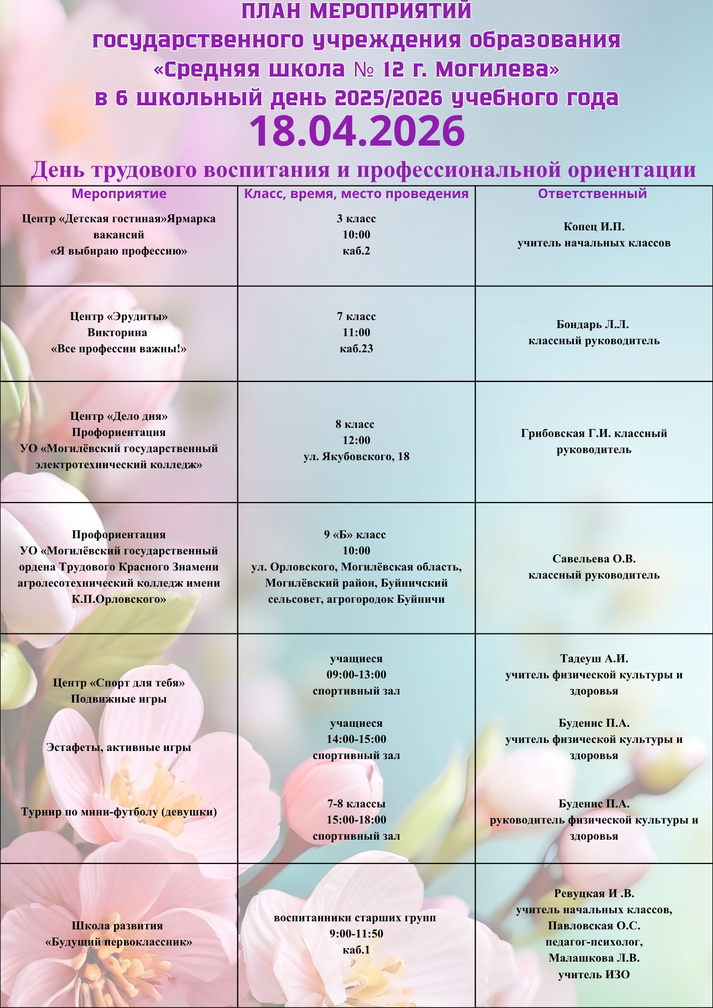21 февраля учащиеся 9 «А» класса имели возможность пообщаться со специалистами «Могилёвского государственного колледжа строительства имени А.П. Старовойтова».