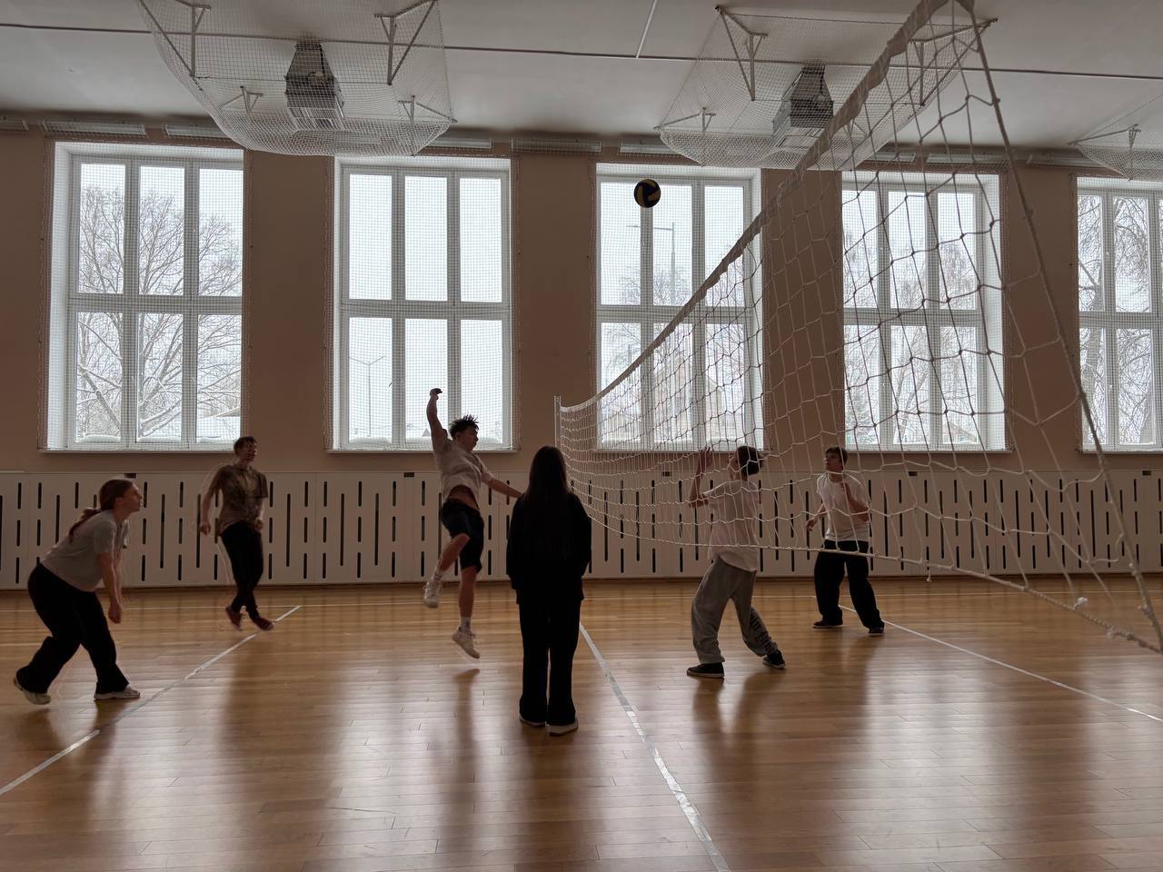 Подача, пас, удар — и мяч влетает на площадку соперника! 🏐⚡ 7 февраля в нашей школе кипели нешуточные страсти — прошел традиционный турнир по волейболу в рамках шестого школьного дня. На площадке царили настоящий спортивный азарт, воля к победе и невероятная командная поддержка!