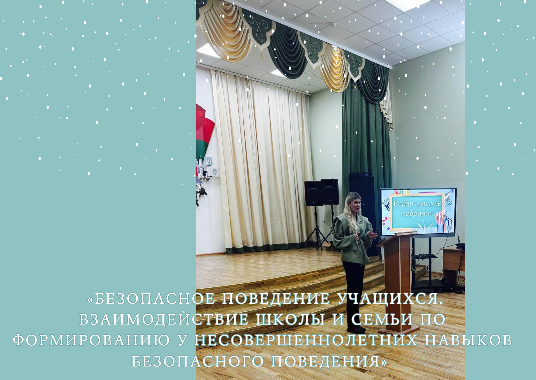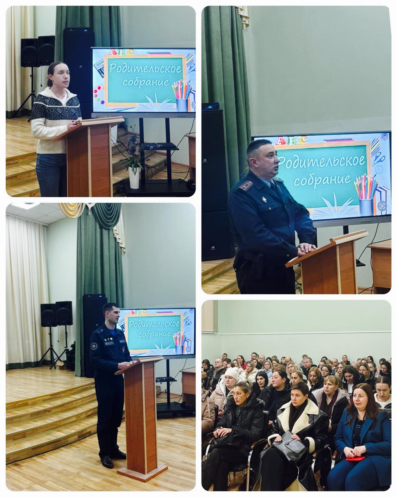 16 декабря в учреждении образования прошло общешкольное родительское собрание «Безопасное поведение учащихся. Взаимодействие школы и семьи по формированию у несовершеннолетних навыков безопасного поведения». Приглашенными гостями родительского собрания стали старший участковый инспектор ИДН РУВД Ленинского района г. Могилева Колеснев В.М., сотрудник Могилевского ГОЧС Шинкевич С.В., врач- педиатр УЗ «Могилевская детская поликлиника» Денисенко В.К.