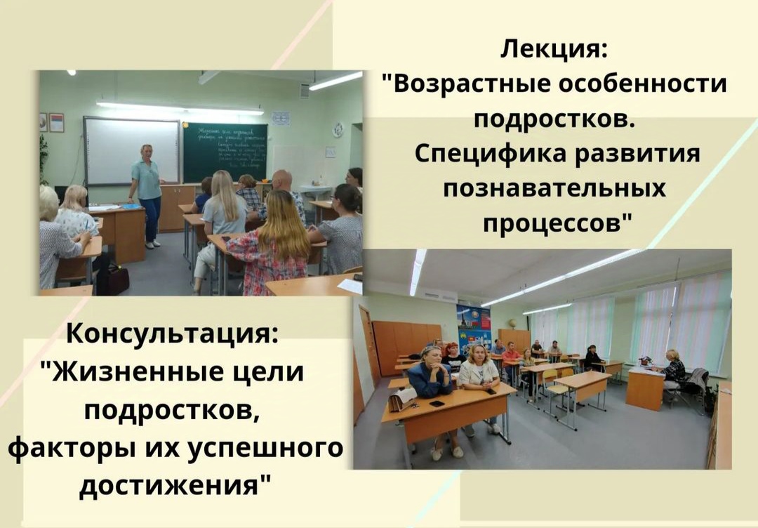 21 сентября 2024 года в 8 классе прошла консультация для родителей "Жизненные цели подростков, факторы их успешного достижения, а в 7 классе - лекция "Возрастные особенности подростков. Специфика развития познавательных процессов".